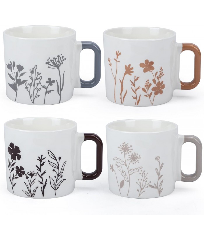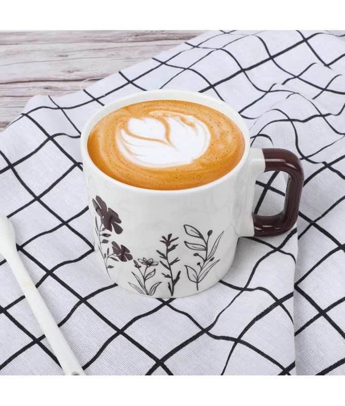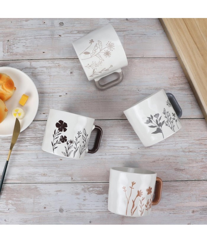 【Versatile Mugs】Our coffee mug and cup set is ideal for various beverages such as water, coffee, tea, milk, orange juice, and instant coffee. With a unique shape adorned with floral patterns on these ceramic mugs, they add a touch of elegance to every use.