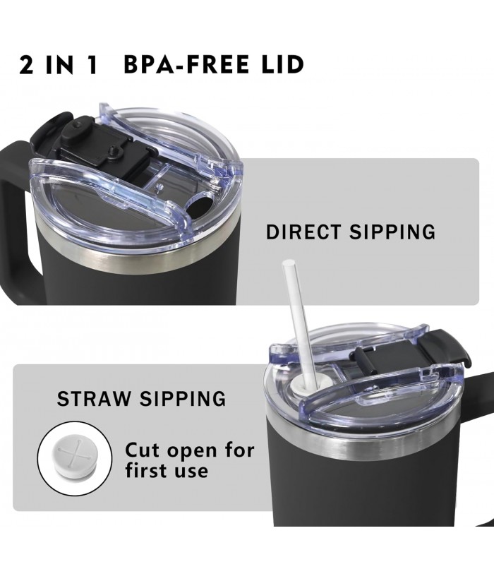 - 【2-in-1 Lid】The lid features a convenient 2-in-1 function that can be used both as a straw and for direct drinking. A removable straw is included, providing additional versatility.