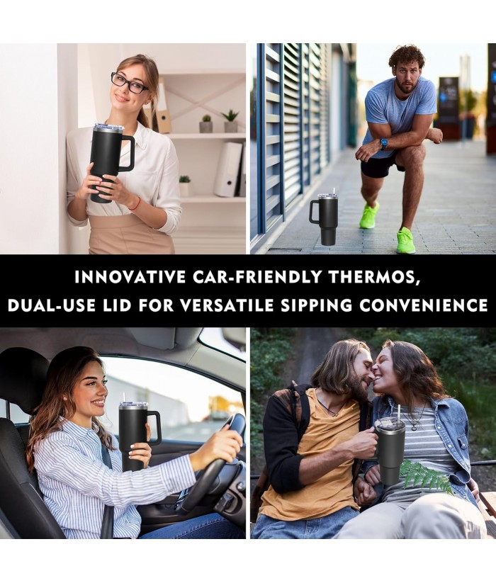 - 【Generous Capacity】With an impressive 1180 ml capacity, the tumbler with straw offers plenty of space for your favorite drinks, whether coffee or tea. 【Travel Mug】The shape of the insulated thermos, narrow at the bottom and wide at the top, allows for easy placement in cup holders, ensuring additional user-friendliness.
