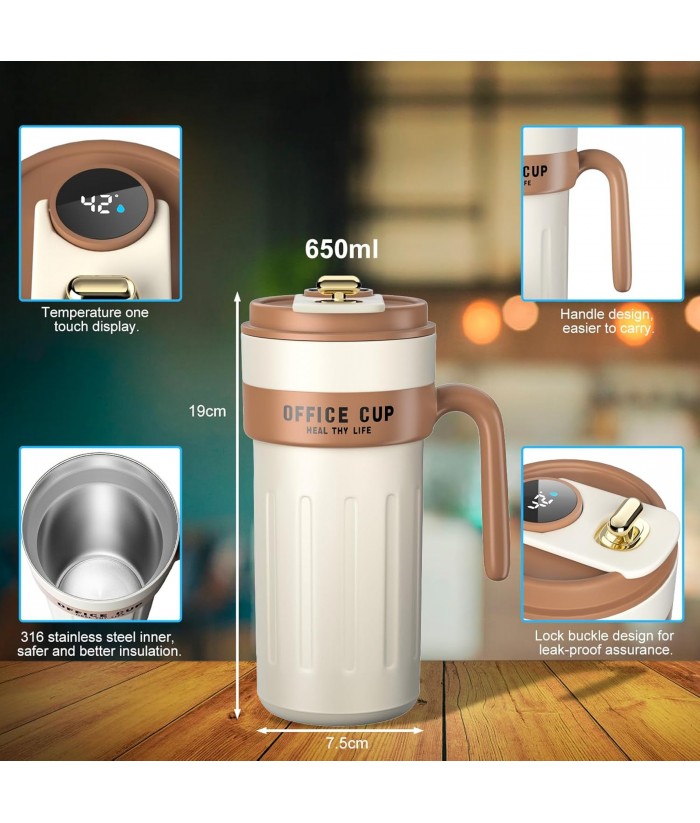 Homealexa Smart Coffee Travel Mugs, 650ml 316 Stainless Steel Vacuum Insulated Coffee Mug with LED Temperature Indicator and Touch Screen, Smart Mug Sealed Bottle