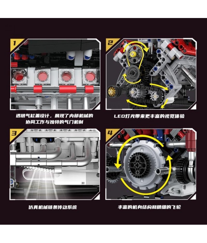 【Reducing Workings of the Real Engine】This building kit Modeled After the iconic F40LM Le Mans Race Car - V8 Engine.The transparent cylinder head design allows you to observe the engine’s operation and piston movement firsthand, this visible engine Building Blocks kit offers an immersive experience in mechanical engineering