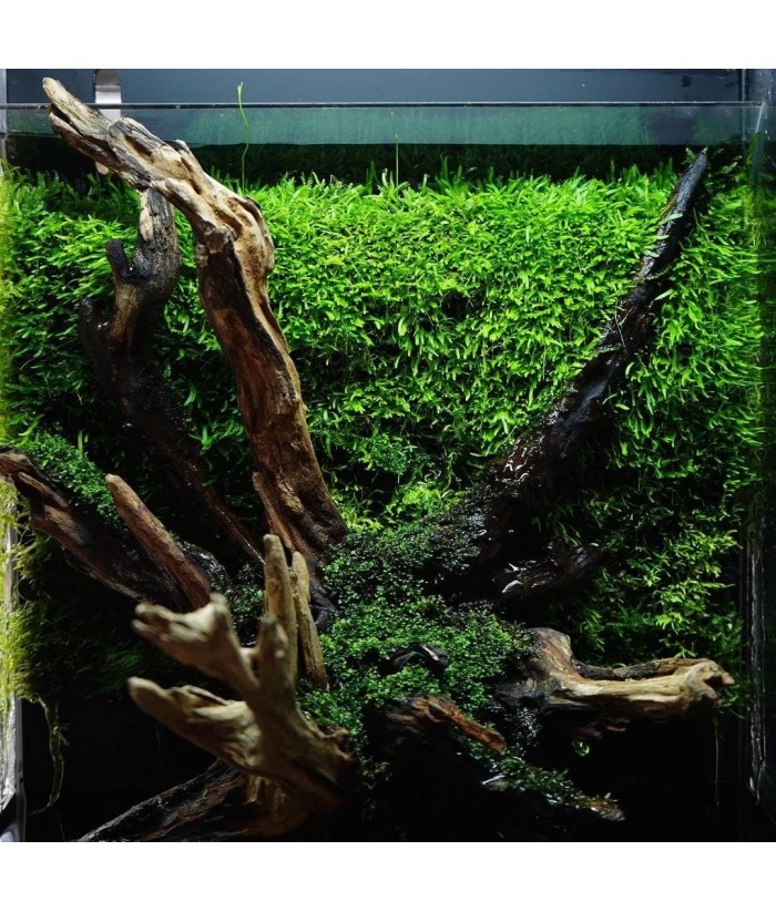 - Vesicularia Montagnei Christmas Moss easily wraps aquascaping rocks or driftwood to create an aged look, and is enjoyed by enthusiasts of all skill levels.