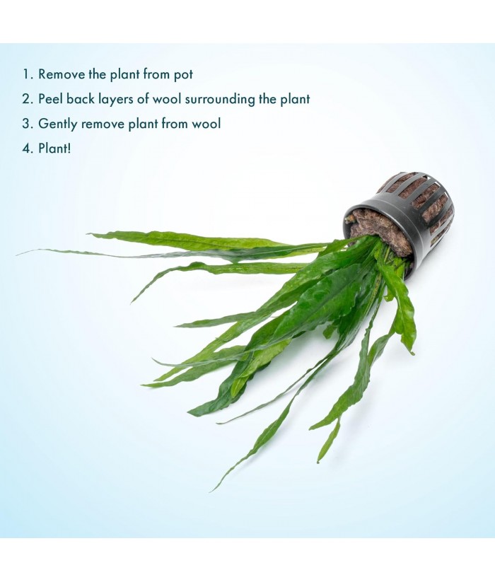 - Each 1-pack ships as a potted rhizome—gently remove from pot and tie or glue to hardscape; do not bury rhizome to avoid rot.
