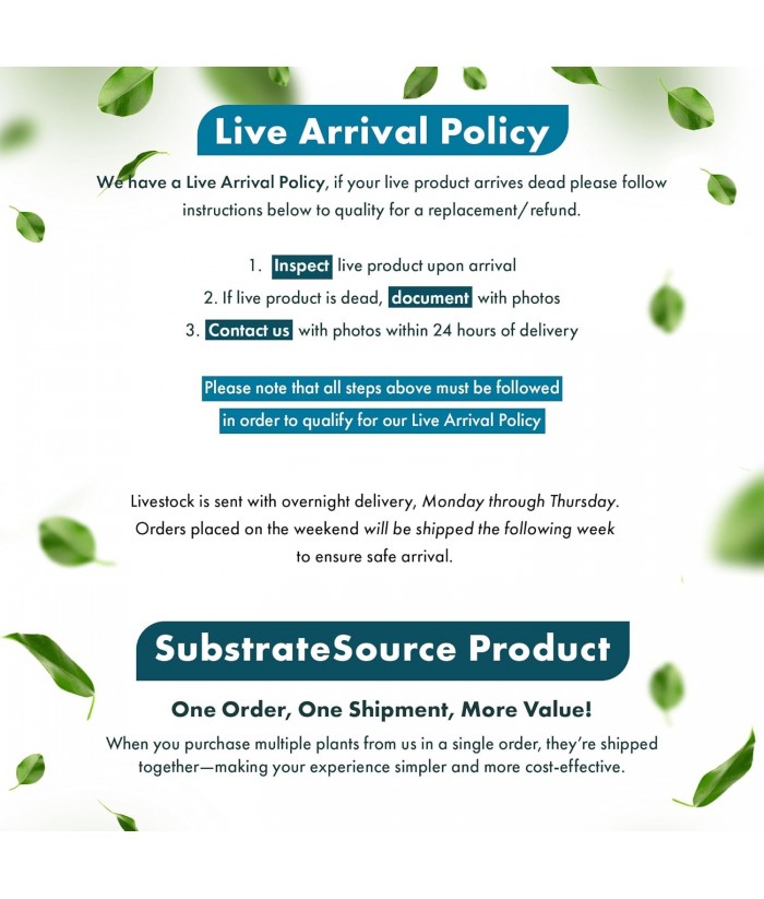 - SubstrateSource inspects each plant prior to and ships all plants in healthy, stable condition with proper packing materials to ensure its safe arrival during . Each plant is backed with a 100% dead-on-arrival replacement guarantee. To qualify, customers must provide a photo of the DOA plant within 24 hours of delivery.