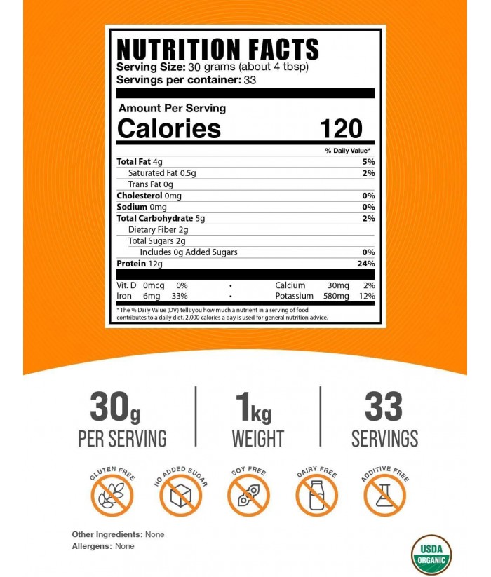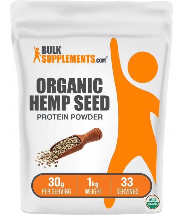 BulkSupplements.com Organic Hemp Protein Powder - Hemp Seed Protein, Superfood Protein Powder, Unflavored Protein - Vegan & Gluten Free, 30g per Serving, 1kg (2.2 lbs) (Pack of 1)