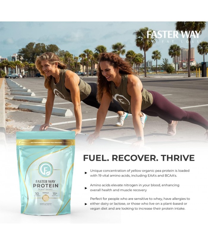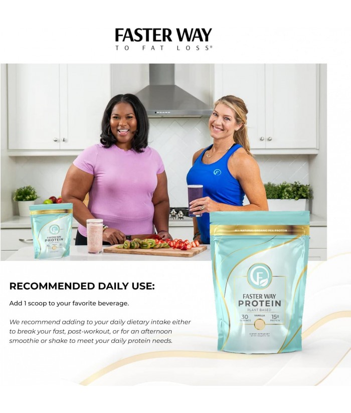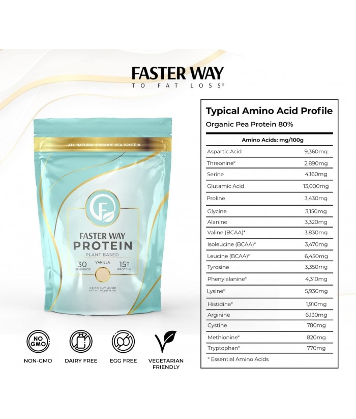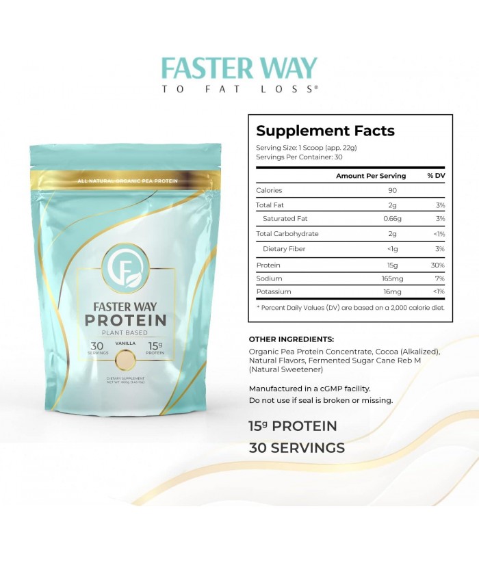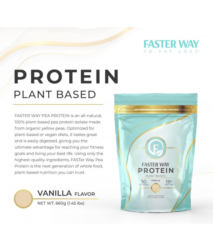 FASTer Way to Fat Loss. Plant-Based Protein Powder Vanilla Flavor, 660g, 30 Day Supply Dairy-Free Alternative to Whey Protein Powder, All-Natural Pea Protein Isolate, Made from Organic Yellow Peas