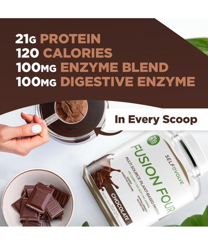 • Incredibly Satisfying: We're challenging the chalky norm and reintroducing flavor; selfevolve FusionFour Protein is now effortlessly blendable and wonderfully tasty in Chocolate. Whether mixed with water, blended into smoothies, or added to baked goods, it's a treat.