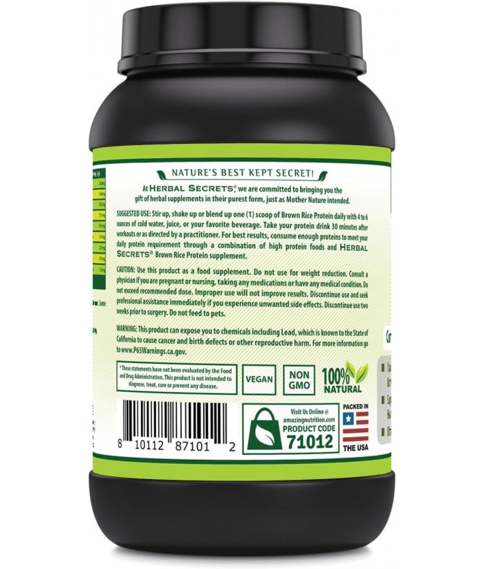 - Brown Rice Vegan Protein Powder, 12 Grams Protein per Serving