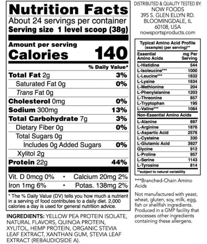 NOW Foods Sports Nutrition, Plant Protein Complex 22 g, Creamy Vanilla Powder, 2-Pound