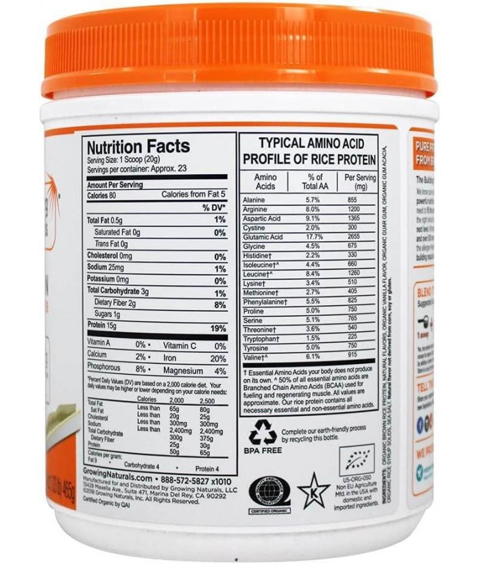 Organic Rice Protein Vanilla Power, 16.8 oz