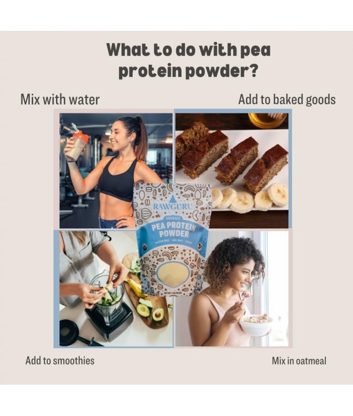 RawGuru Organic Pea Protein Powder - 16 oz - USDA Organic | Gluten Free | Non-GMO | Vegan | Plant Protein Powder