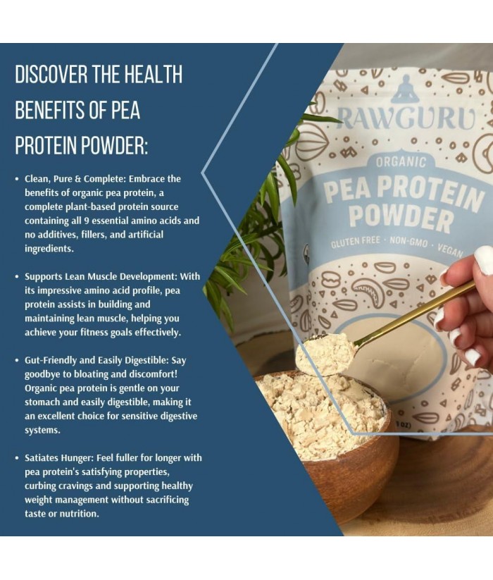 RawGuru Organic Pea Powder boasts a complete amino acid profile, including all nine essential amino acids. It supports muscle growth, recovery, and overall well-being, helping you reach your fitness goals.
