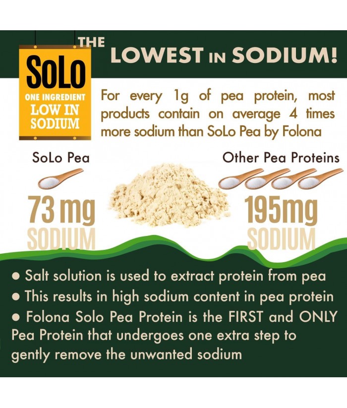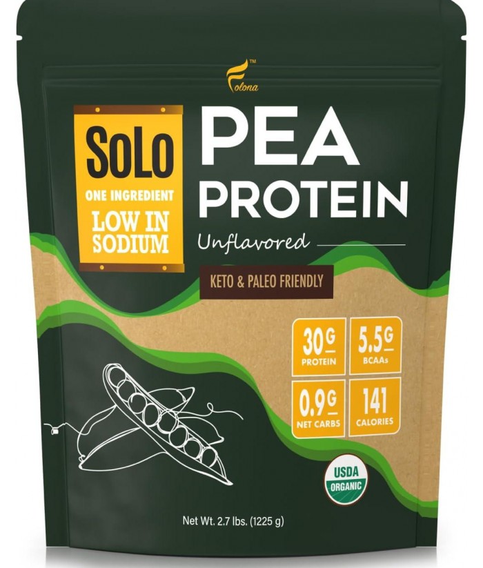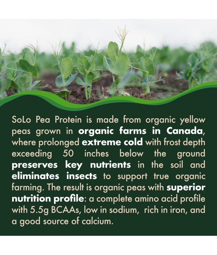 Solo Organic Pea Protein Powder, Low in Sodium, Canada Grown Peas, 100% Vegan, Non-GMO, Unflavored Plant Based Protein Powder with BCAA (2.7 lbs)
