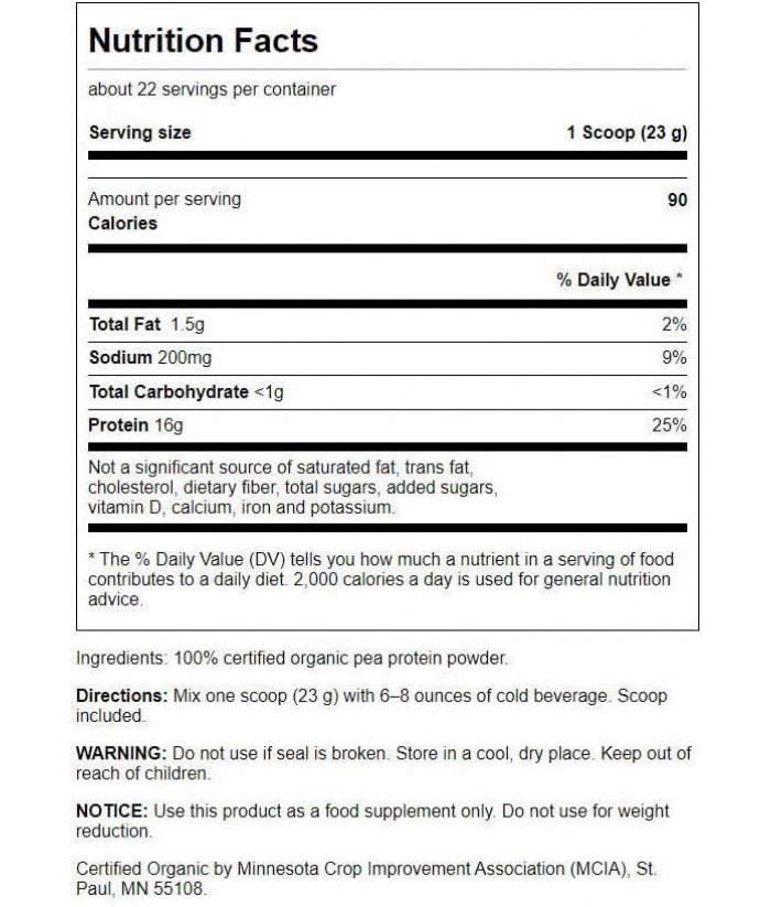 Swanson 100% Certified Organic Pea Protein Powder Non-GMO 1.1 lb (503 g) Pwdr