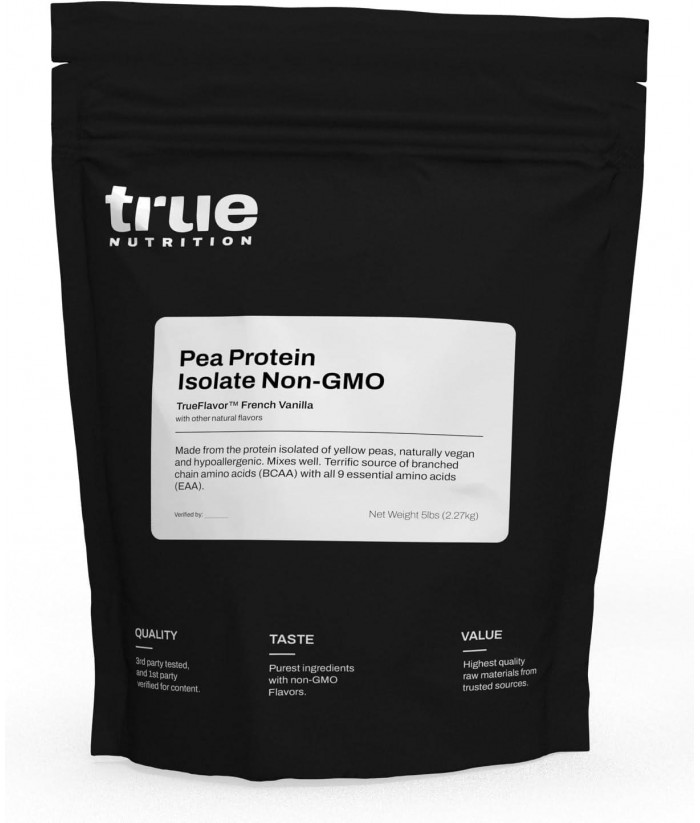 True Nutrition Pea Protein Powder Isolate - 25g Non-GMO Vegan Protein Powder per Serving - Low Carb, Low Fat, High Leucine - Gluten Free, Dairy Free, Soy Free - French Vanilla - 5LB