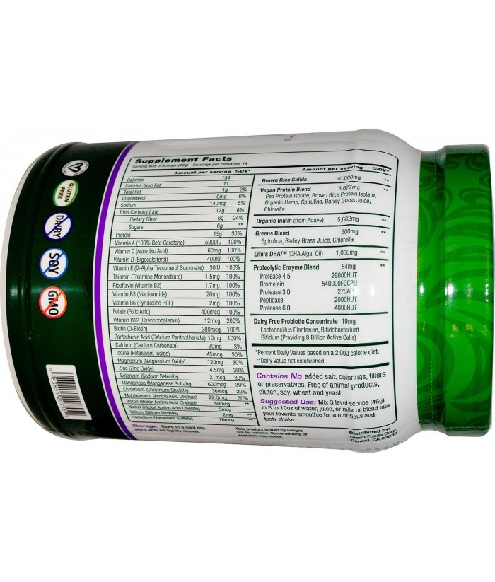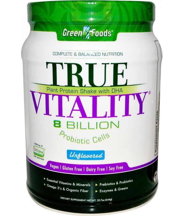 True Vitality Plant Protein Shake with DHA-Unflavored Green Foods 22.7 oz Powder