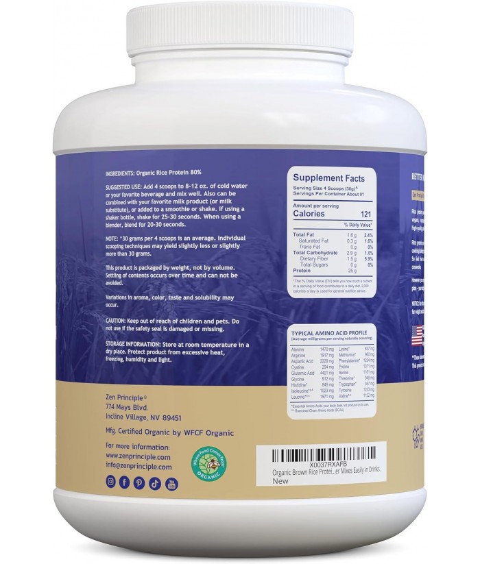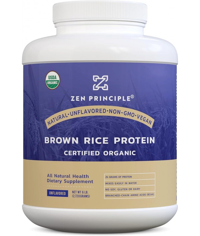 Zen Principle Organic Brown Rice Protein 6 LB. USDA Certified Organic. Unflavored. Non-GMO. Vegan.