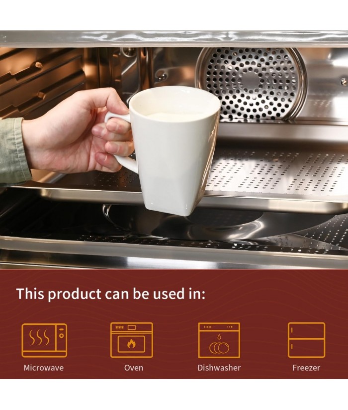 Elegant and Practical - The elegant white design with a square bottom adds a touch of elegance to your coffee or tea. The handle provides a comfortable grip, making it easy to hold and enjoy hot drinks.